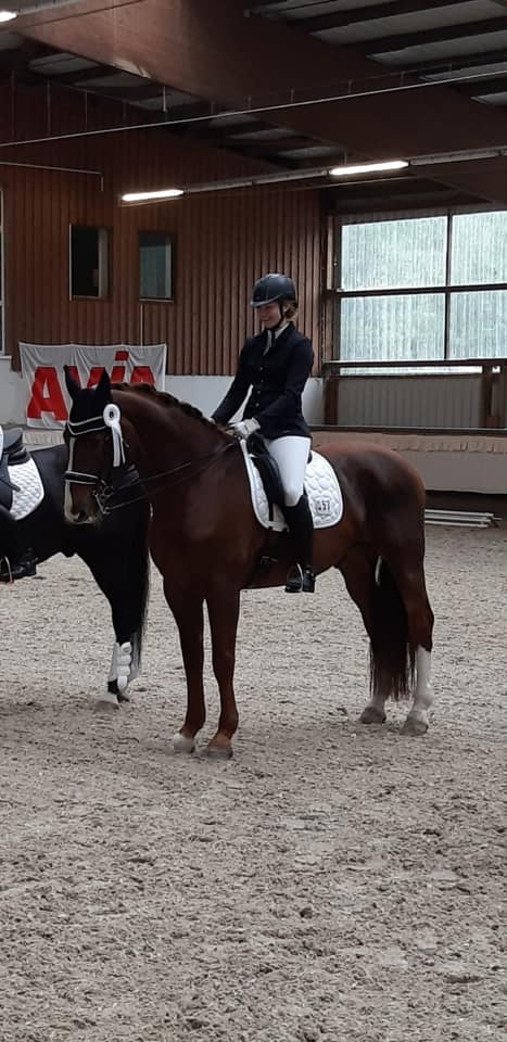 Julia Oschem und Wanja waren zweimal in Dressurprüfungen der Klasse A platziert. Einmal in Halver mit einer 6,8 an 7ter Stelle und einmal in Aue-Wingeshausen mit 6,6 an 6ter Stelle.